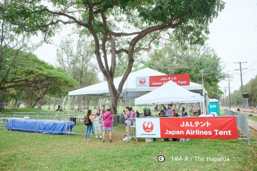 ハワイズハーフマラソンハパルアに参加される方のために、大会当日カピオラニ公園内に「JALテント」をご用意いたします。