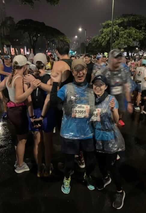 いつもだと(3万人から走るマラソンでは)号砲からスタートラインまでは20分は掛かるのに今回は合図からものの1分であっという間に通過。それでも10km位までは頑張れたものの、時差ボケというか寝不足というか、沿道で高橋尚子さんから応援して頂いた所を過ぎた辺りで眠くて走れなくなってしまいました。コースアウトして座り込むと左足全体が攣ってしまいサア困った。