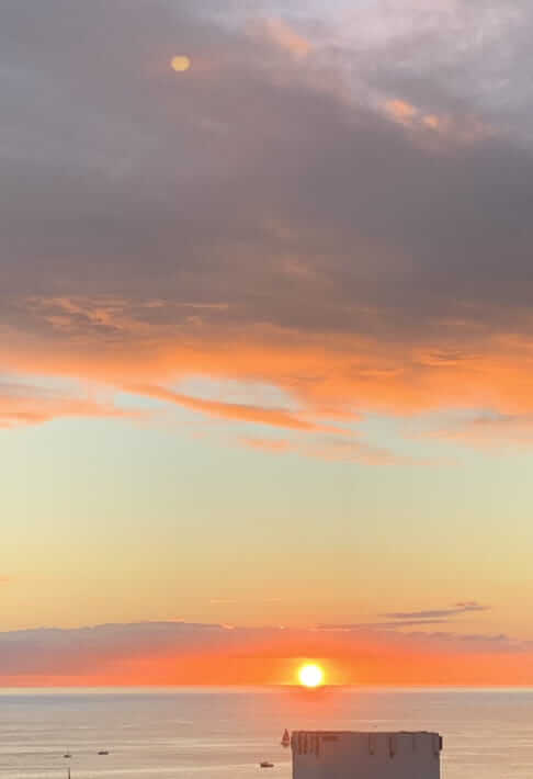 海もダイヤモンドヘッドも見え、夕陽も夜景も素敵な眺め。